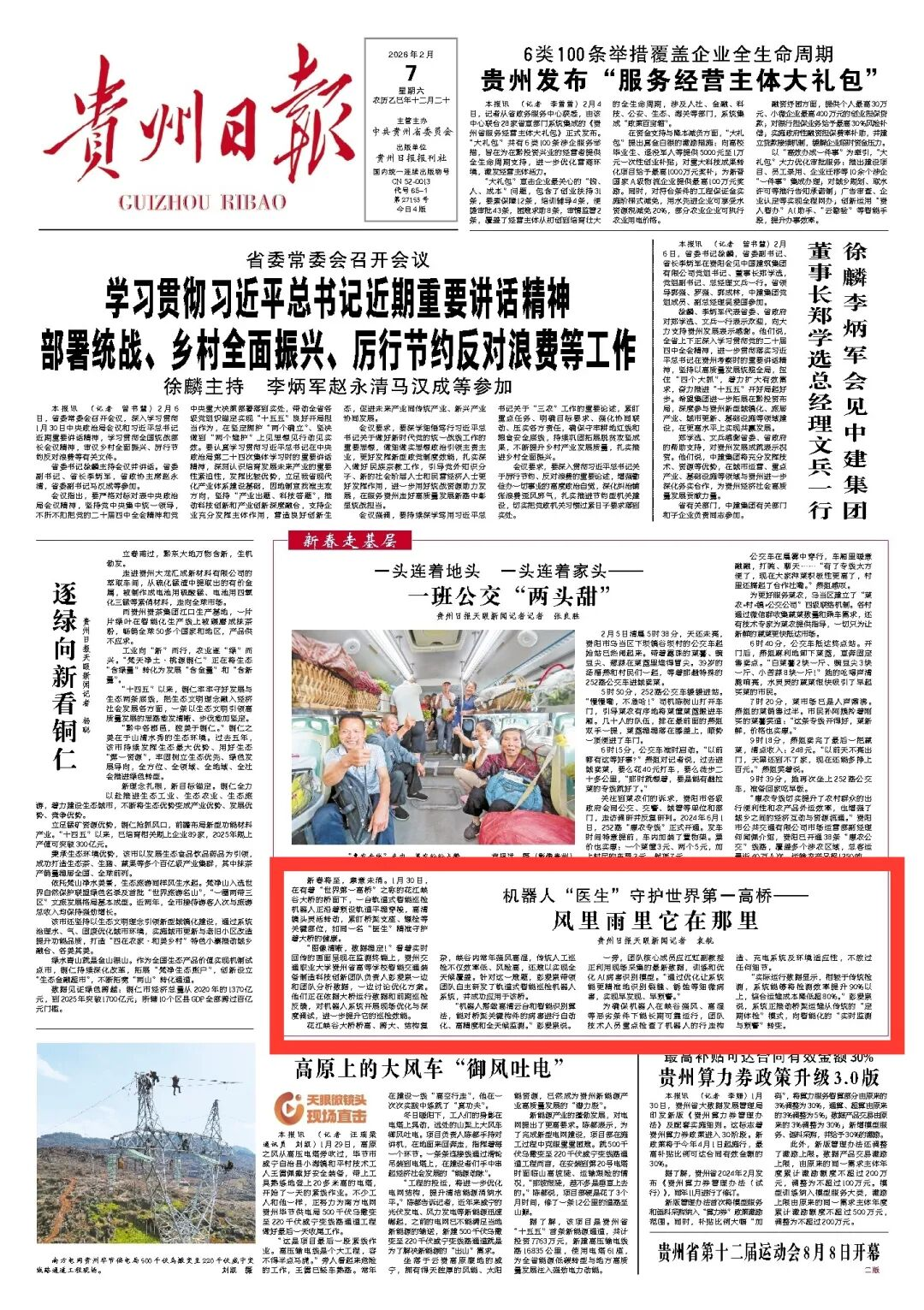 媒体关注 | 贵州日报头版聚焦我校科研成…导 语2月7日,《贵州日报》头版“新春走基层”栏目以《机器人“医生”守护世界…