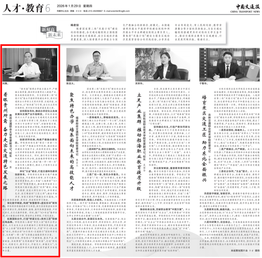- 2026-01-30媒体关注 | 《中国交通报》刊发刘雁校长...