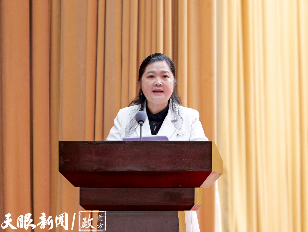 杨未在全省高等教育高质量发展大会上作发言。(图/潘德玉 摄)
